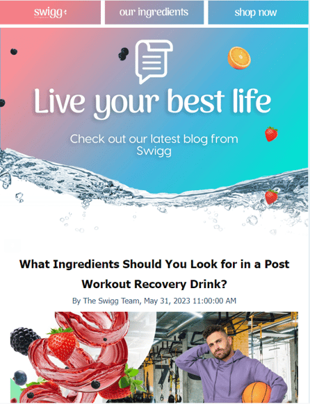 Take this blog notification email we designed for one of our clients, Swigg. Here's how the email appears by default: