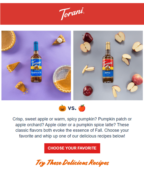 Take this email from flavored syrup brand Torani. Here is what the email looks like in default light mode: