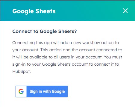Once you click on the app, you’ll have to sign into your Google account with HubSpot and give them permission to edit your spreadsheet data.